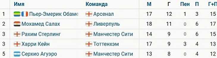 В нынешнем сезоне на счету Обамеянга 12 мячей в 18 встречах АПЛ. Теперь он вышел на первое место в гонке бомбардиров, обогнав форварда «Ливерупля» Мохамеда Салаха.
