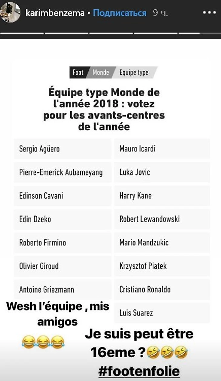 «Эй, L’Équipe, друзья мои, может, я 16-й? – написал Бензема.