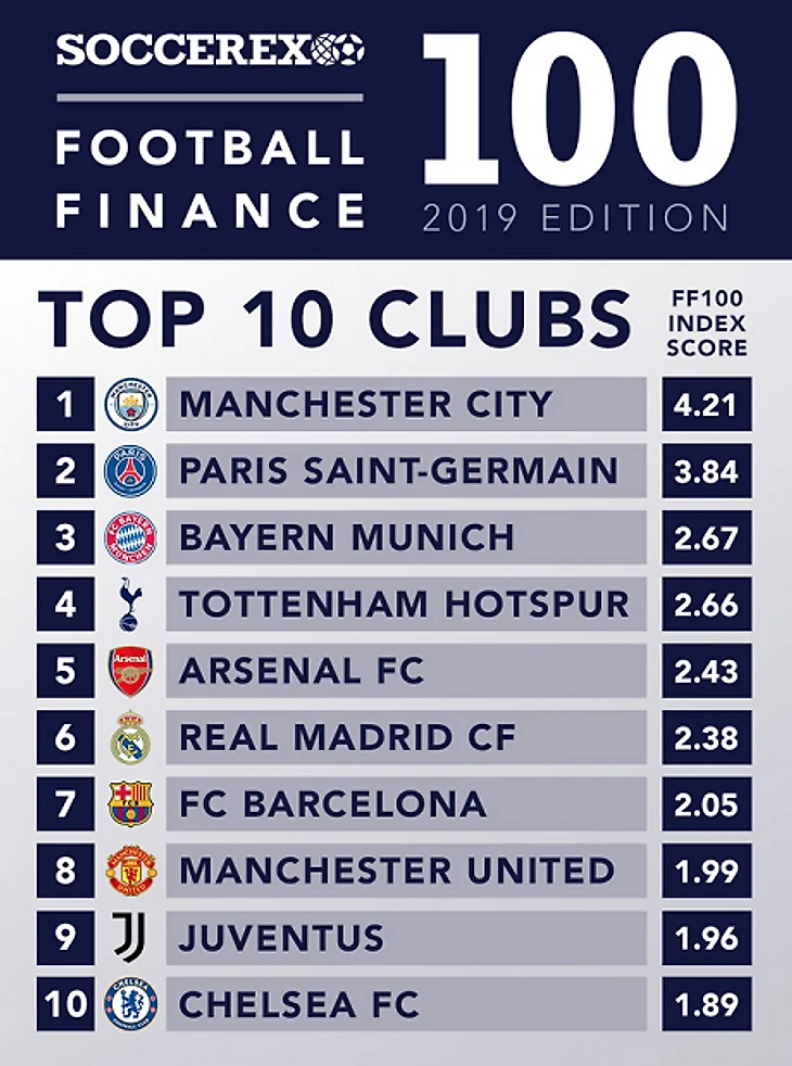 В исследовании компания Soccerex опиралась на данные УЕФА, Financial Times, Bloomberg, Yahoo Finance, Forbes и Transfermarkt.
