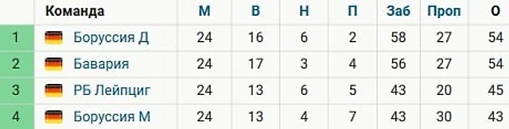 У лидирующей в чемпионате Германии дортмундской «Боруссии» (1 победа в пяти последних играх) также 54 очка.