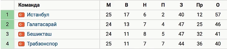 «Истанбул» по-прежнему лидирует в турнирной таблице, опережая «Галатасарай» на 11 очков. У «Галатасарая» остается одна игра в запасе.