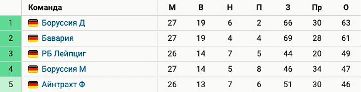 Дортмундская «Боруссия» опередила «Баварию» и вышла на 1-е место в бундеслиге