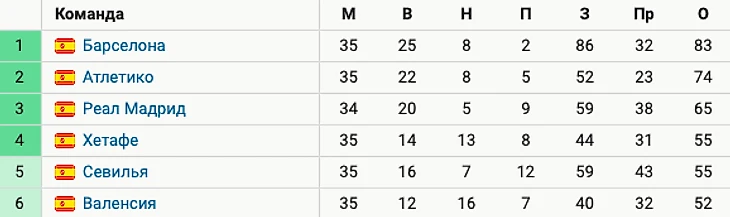 В 35-м туре примеры «Севилья» проиграла «Жироне» (0:1), а «Хетафе» потерпел поражение от «Сосьедада» (1:2).