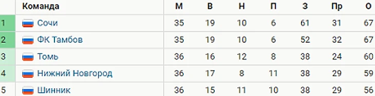 «Тамбов» и «Сочи» обеспечили себе право выступить в РПЛ в следующем сезоне.