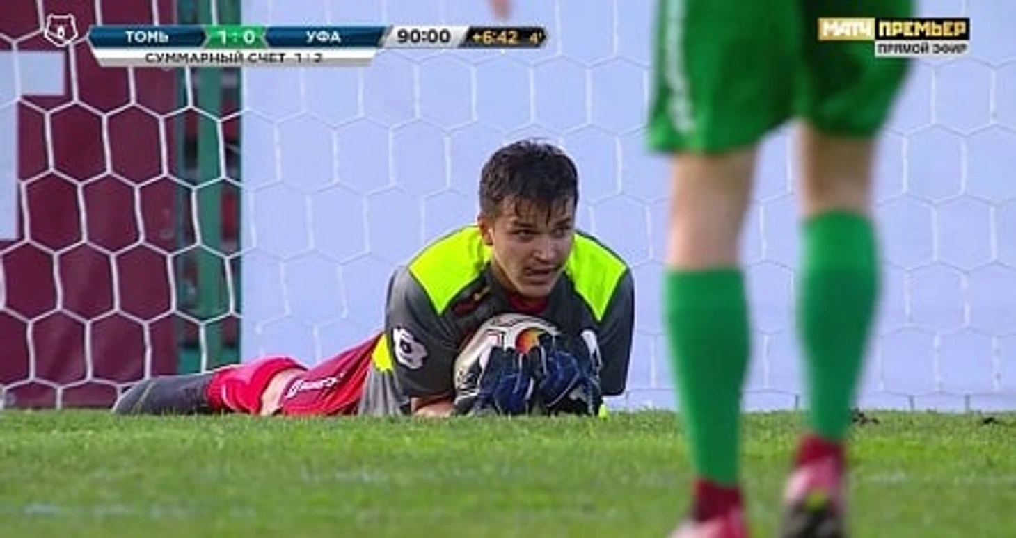 У «Уфы» к тому моменту не осталось замен. Форвард Вячеслав Кротов занял место в воротах и успел вступить в игру после легкого навеса от игрока «Томи».