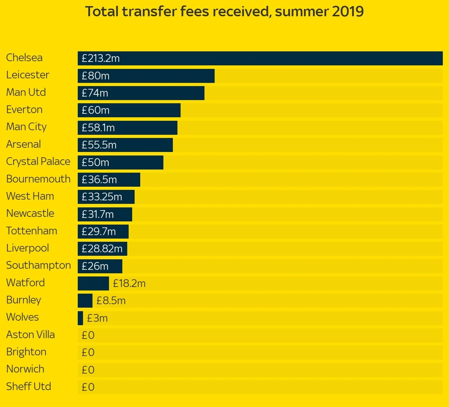 «Челси» летом продал игроков на 213 млн фунтов, больше всех потратил «МЮ» – 148 млн