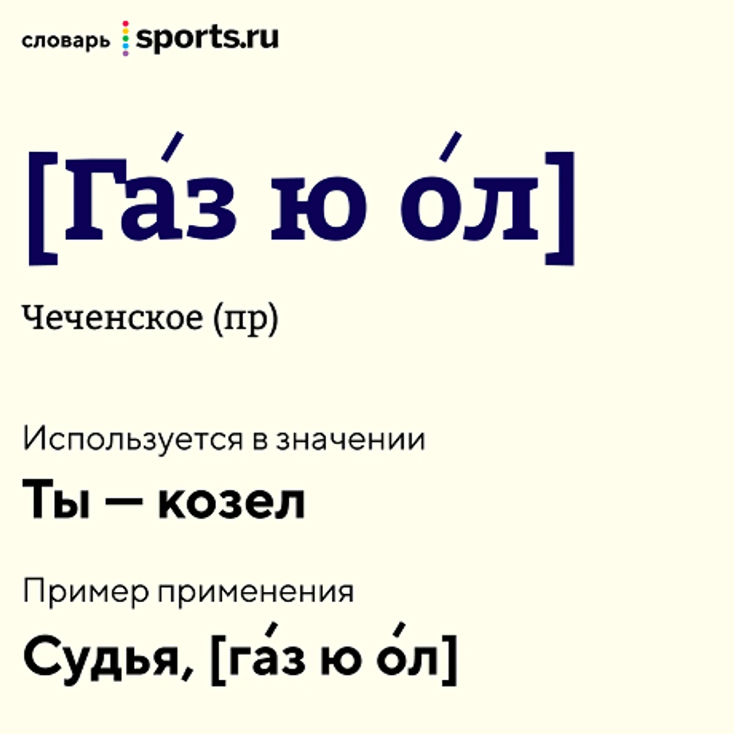 Вероятно, слова были произнесены на чеченском языке: «Судья – газ ю ол». Что можно перевести как: «Судья, ты козел».