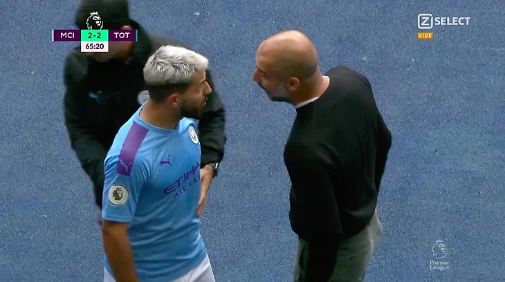 Между Гвардиолой и Агуэро произошла перепалка в игре с «Тоттенхэмом»