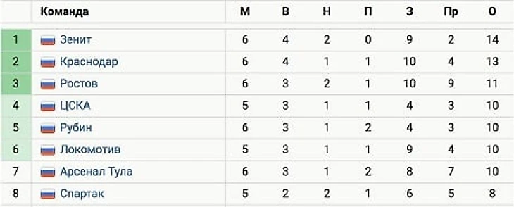Таким образом, единственным клубом РПЛ, не проигравшим ни одного матча, остался «Зенит», который занимает первое место, набрав 14 очков.