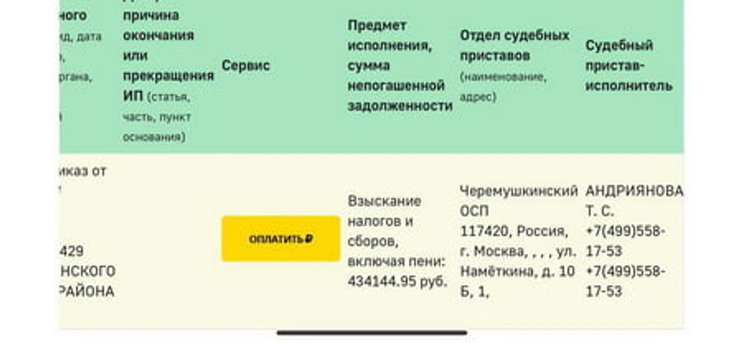 Согласно базе данных ФССП, сумма задолженности составляет 434 тысячи рублей.
