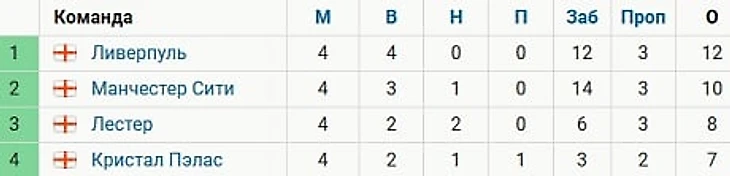 Команда Юргена Клоппа выиграла все четыре игры на старте чемпионата Англии с общим счетом 12:3 и лидирует в таблице.