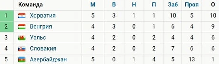 Хорваты, набрав 10 очков в пяти матчах, лидируют в группе E.