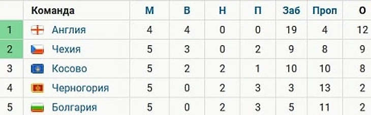 Англичане выиграли все четыре матча в отборочном турнире к чемпионату Европы с общим счетом 19:4 и лидируют в группе A, набрав 12 очков.