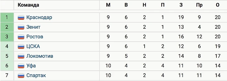 Премьер-лига Россия (РПЛ). 10 тур