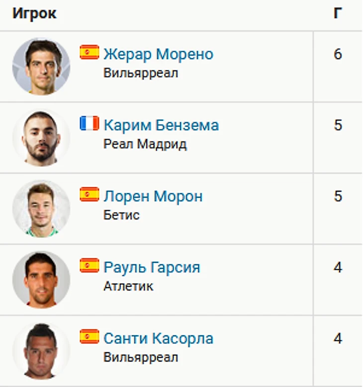 Нападающий «Вильярреала» Жерар Морено забил гол в конце игры. Благодаря этому 27-летний испанец возглавляет список бомбардиров Ла Лиги с 6 голами.