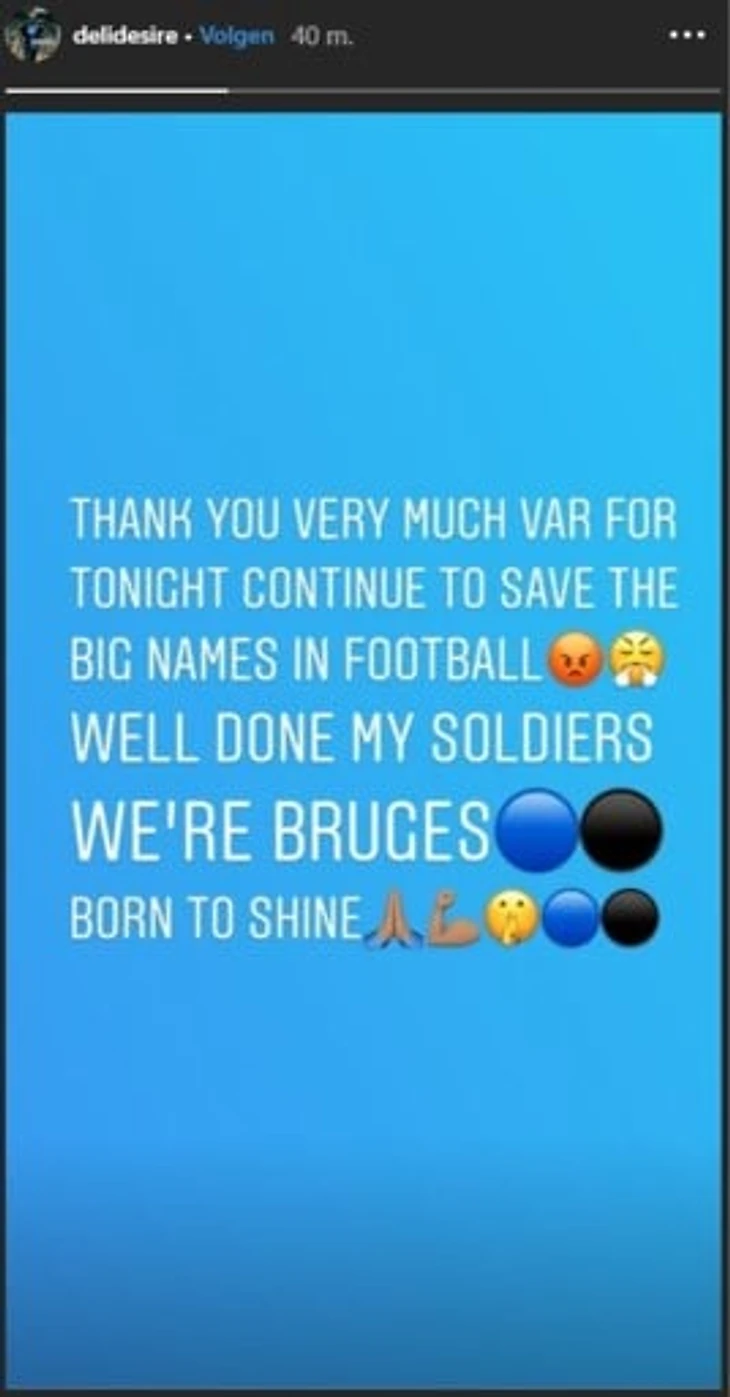 Защитник «Брюгге» Дели: «Огромное спасибо VAR за очередное спасение большого клуба»