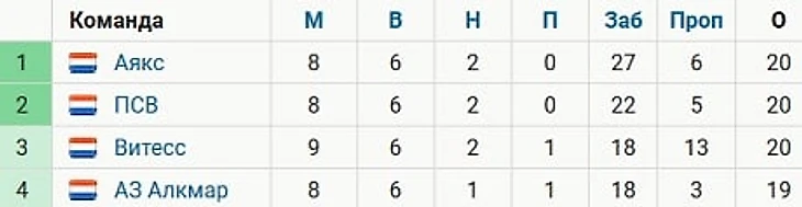 «Витесс» вышел на третье место в таблице, опередив АЗ и сравнявшись по очкам с ПСВ и «Аяксом». У всех трех соперников команды Слуцкого матч в запасе.