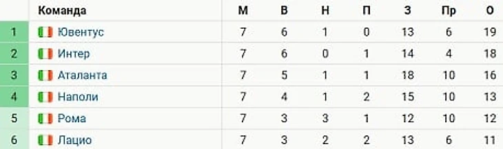 Туринцы, выигравшие шесть встреч и однажды сыгравшие вничью, вышли на первое место, сместив на вторую строчку «Интер», лидировавший с первого тура.