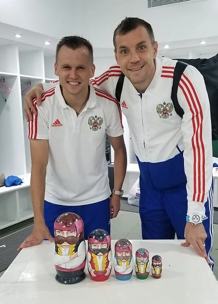 Оставляем вам наш традиционный подарок – русские матрешки на киприотский манер», – написано в твиттере сборной России.