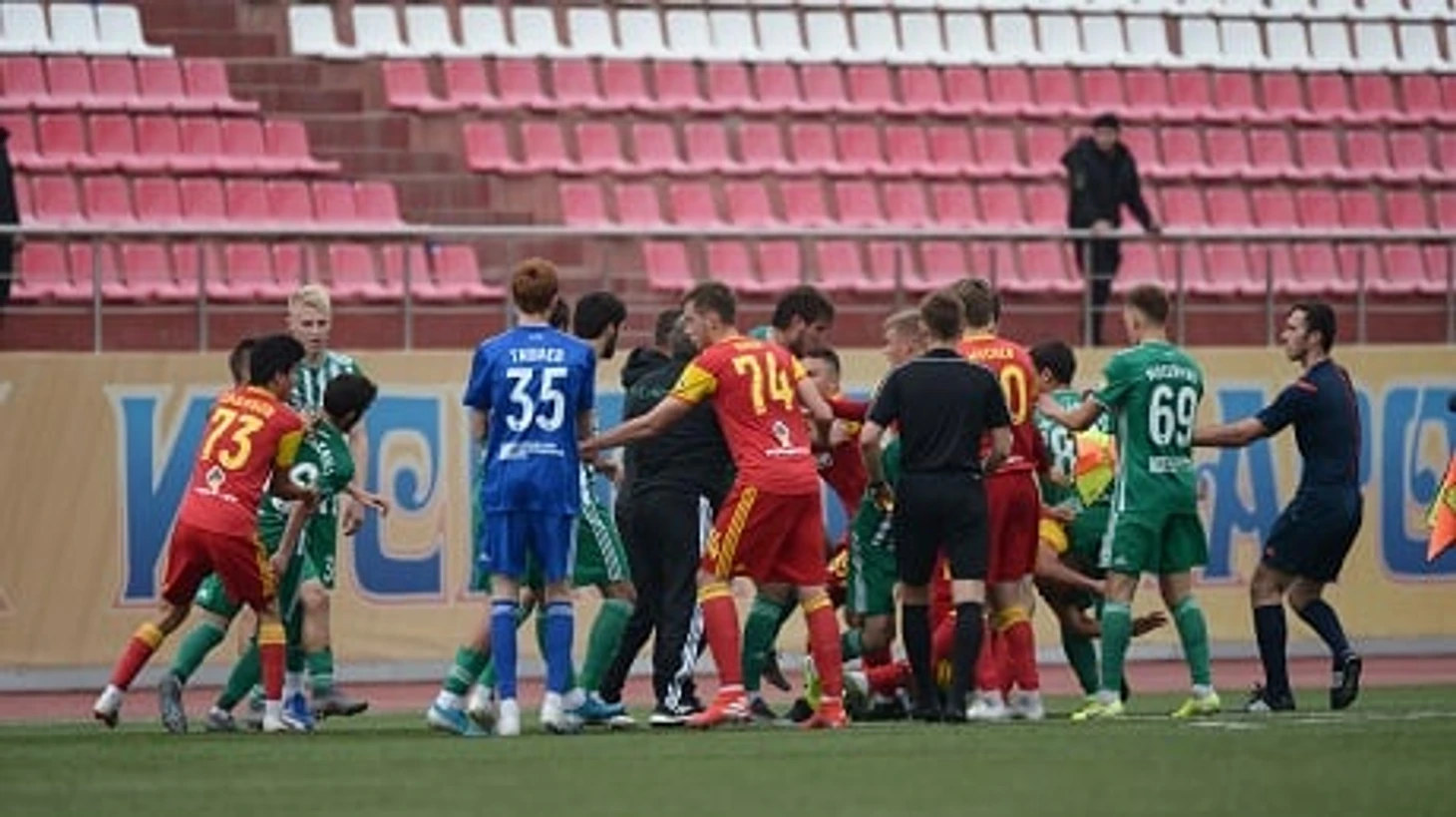 На 38-й минуте игрок «Арсенала» нарушил правила против Асхаба Чунчурова в центральном круге, после чего началась потасовка.