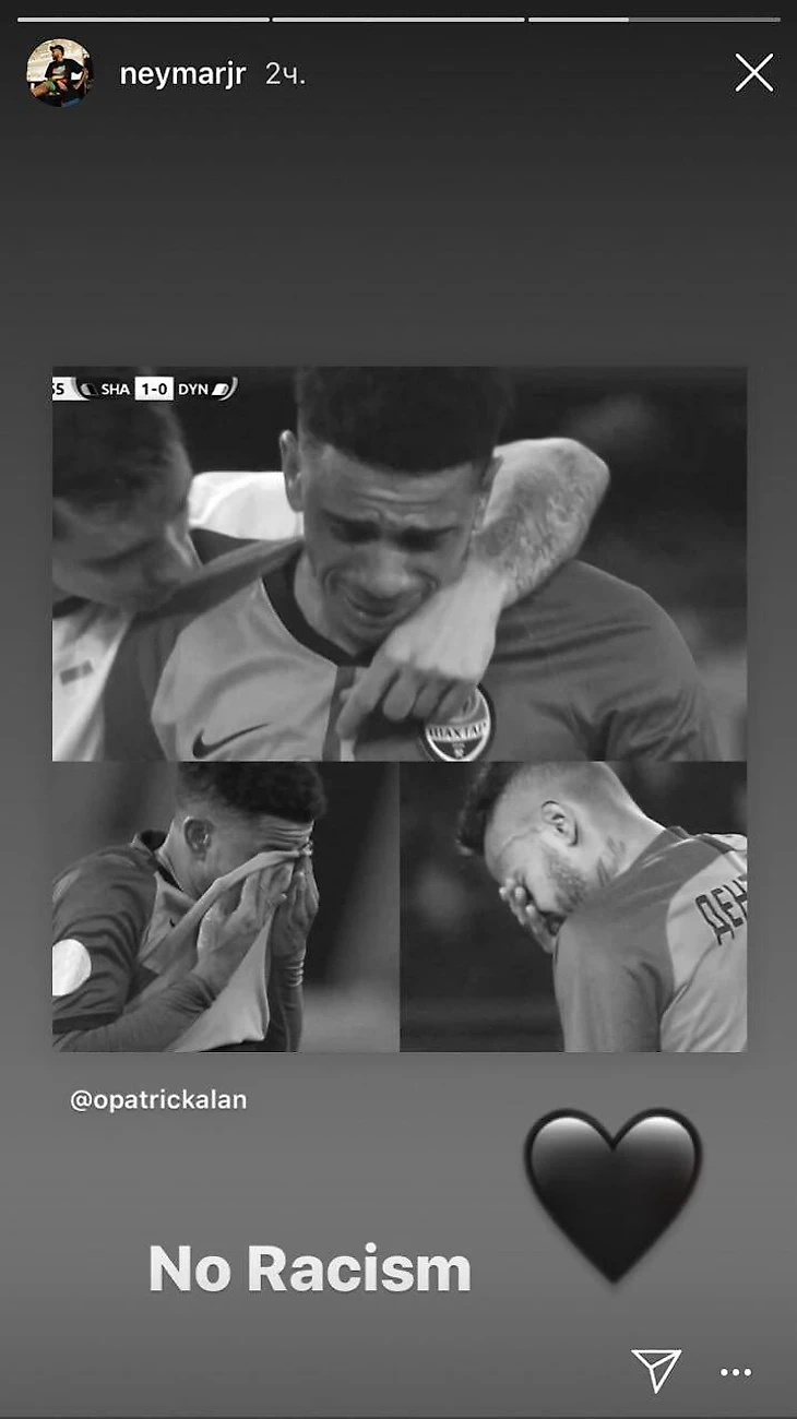 Нападающий «ПСЖ» Неймар поддержал игроков «Шахтера», которые подверглись расистским оскорблениям в матче чемпионата Украины против киевского «Динамо» (1:0).