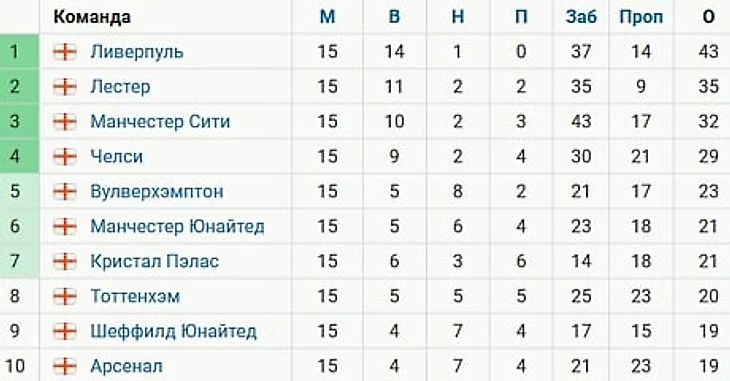 Премьер-лига Англия (АПЛ). 15 тур