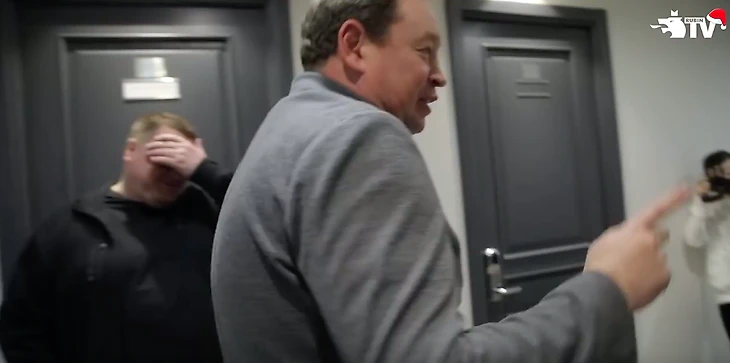 Рыскин закрыл лицо руками, когда попал в кадр.