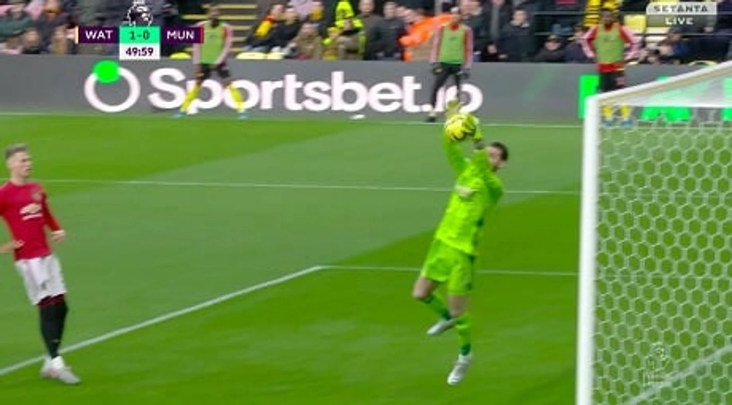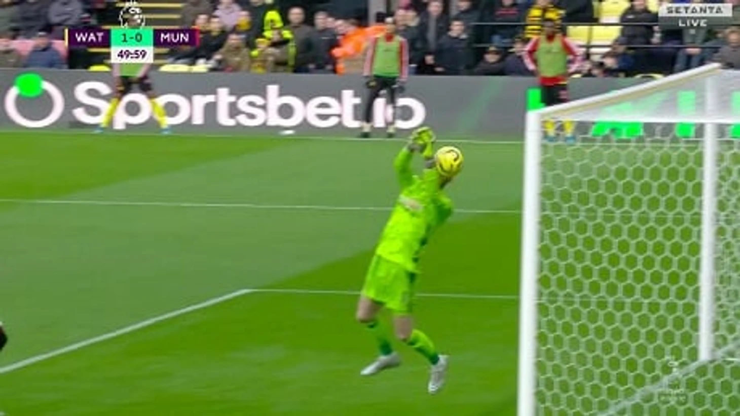 Вратарь «Манчестер Юнайтед» Давид Де Хеа допустил результативную ошибку в матче 18-го тура АПЛ с «Уотфордом» (0:2).