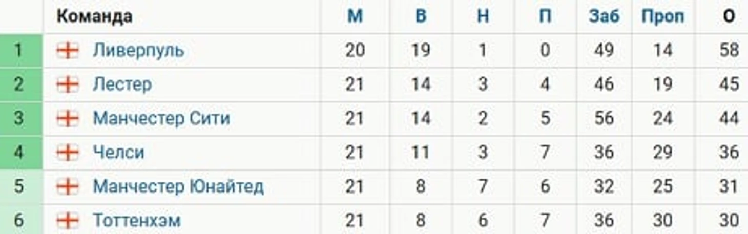Команда тренера Юргена Клоппа, имея матч в запасе, набрав 58 очков, опережает «Лестер» на 13 баллов, а идущий третьим «Манчестер Сити» – на 14.