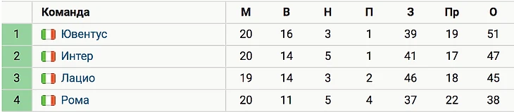 Набрав 51 очко в 20 турах, команда Маурицио Сарри лидирует в турнирной таблице, опережая «Интер» на четыре очка.