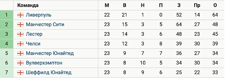 К 13-му туру у команды Юргена Клоппа было преимущество в 20 очков перед «Юнайтед».