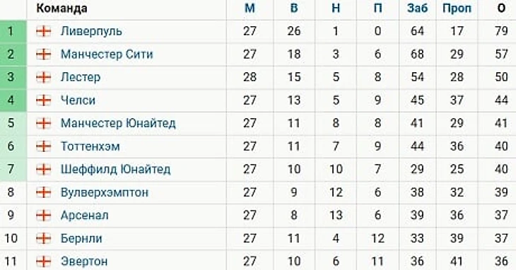 После 28 туров «Лестер» набрал 50 очков и занимает 3-е место. «Лисы» отстают от идущего 1-м «Ливерпуля» на 29 очков, от «Манчестер Сити» – на 7. У «красных» и «горожан» также есть матч в запасе.