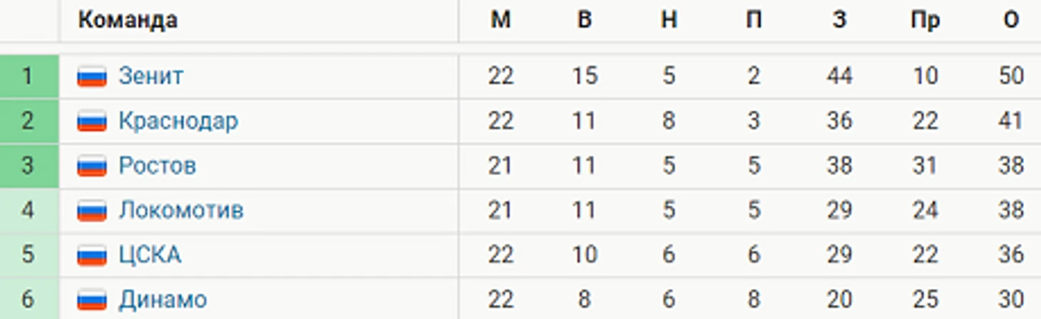 ЦСКА занимает пятое место в РПЛ с 36 очками.