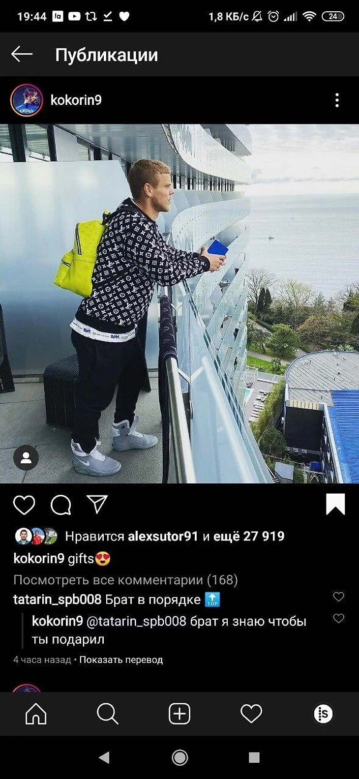 Кстати, сам Кокорин лайкнул фото в кроссовках в инстаграме Sports.ru о стиле. Вы тоже подписывайтесь!