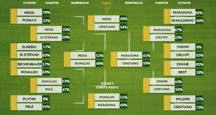 Испанское издание Marca провело опрос среди своих читателей, поинтересовавшись, кого они считают лучшим футболистом всех времен.