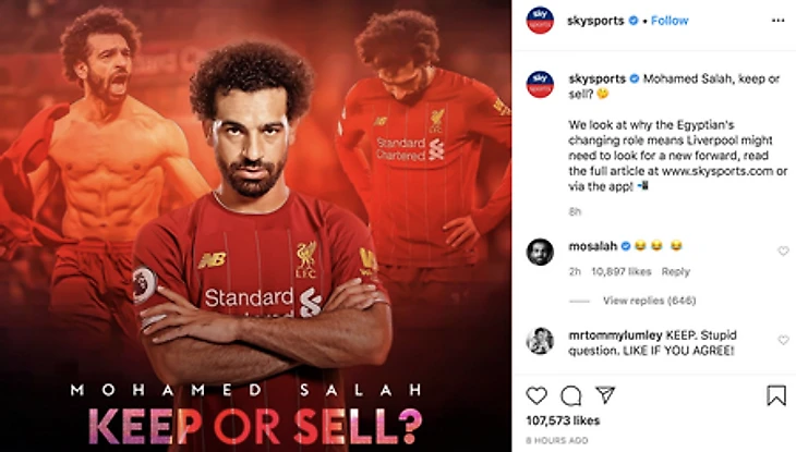 Форвард «Ливерпуля» Мохамед Салах отреагировал на опрос Sky Sports о том, что должны сделать мерсисайдцы с игроком – оставить в команде или продать.