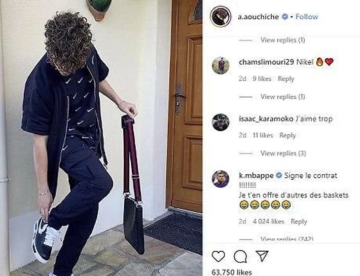 Мбаппе призвал Аушиша остаться в «ПСЖ», прокомментировав фото игрока, примеряющего кроссовки: «Подпиши контракт! Я дам тебе больше кроссовок».