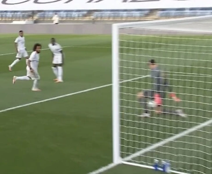 Мяч изменил направление после рикошета и попал между ног вратарю Тибо Куртуа, который не сумел отбить удар.