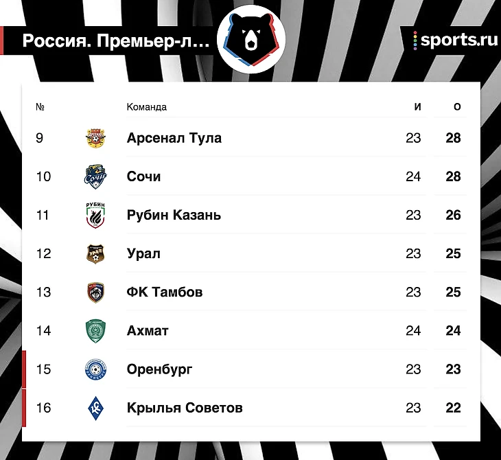 Грозненский клуб остался на 14-й позиции в турнирной таблице с 24 очками, «Сочи идет 10-м (28 очков).