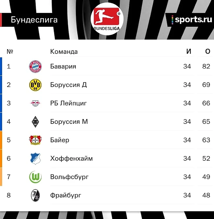 «Бавария», обе «Боруссии» и «Лейпциг» вышли в ЛЧ, «Байер», «Хоффенхайм» и «Вольфсбург» – в ЛЕ