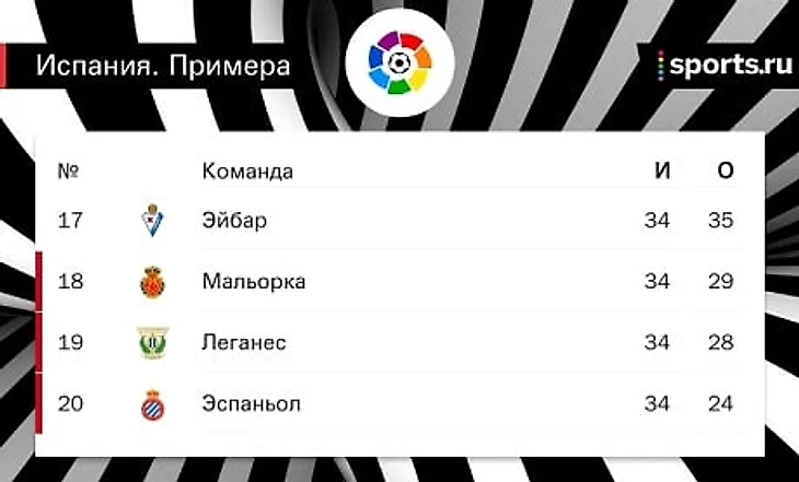 «Эспаньол» набрал 24 очка в 35 турах и за три тура до конца потерял шансы на то, чтобы остаться в высшем дивизионе Испании. У идущего 17-м «Эйбара» 35 баллов.