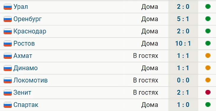 Это пятая победа южан за 9 последних встреч. На этом отрезке они потерпели лишь одно поражение – в прошлом туре от «Зенита» (1:2).
