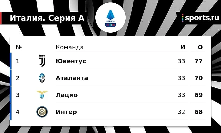 «Интер», у которого есть матч в запасе, может сократить отставание от «Юве» до шести очков за 5 туров до конца сезона. Миланцы завтра в гостях сыграют со СПАЛ.