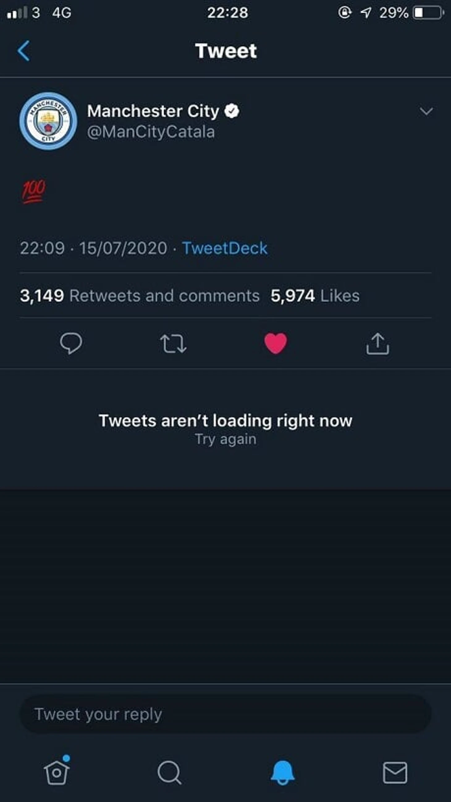 В каталонском аккаунте «горожан» в твиттере после игры было опубликовано сообщение из одного символа: «💯».