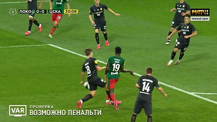 В первом тайме защитник армейцев Игорь Дивеев нарушил правила на форварде Эдере, сбив его в штрафной.