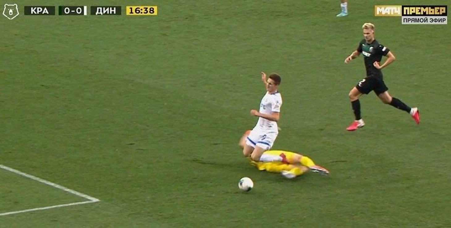 Главный судья Михаил Вилков показал голкиперу красную карточку на 17-й минуте за фол последней надежды против полузащитника «Динамо» Вячеслава Грулева. Нарушение произошло вне штрафной площади.