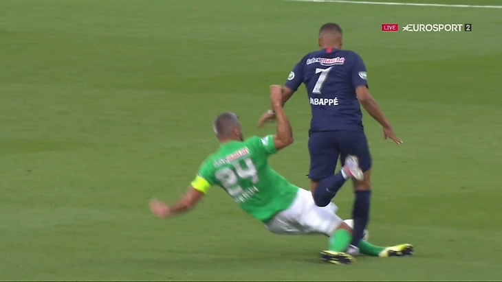 Мбаппе получил травму. Игрока «Сент-Этьена» удалили после ВАР за фол на нем