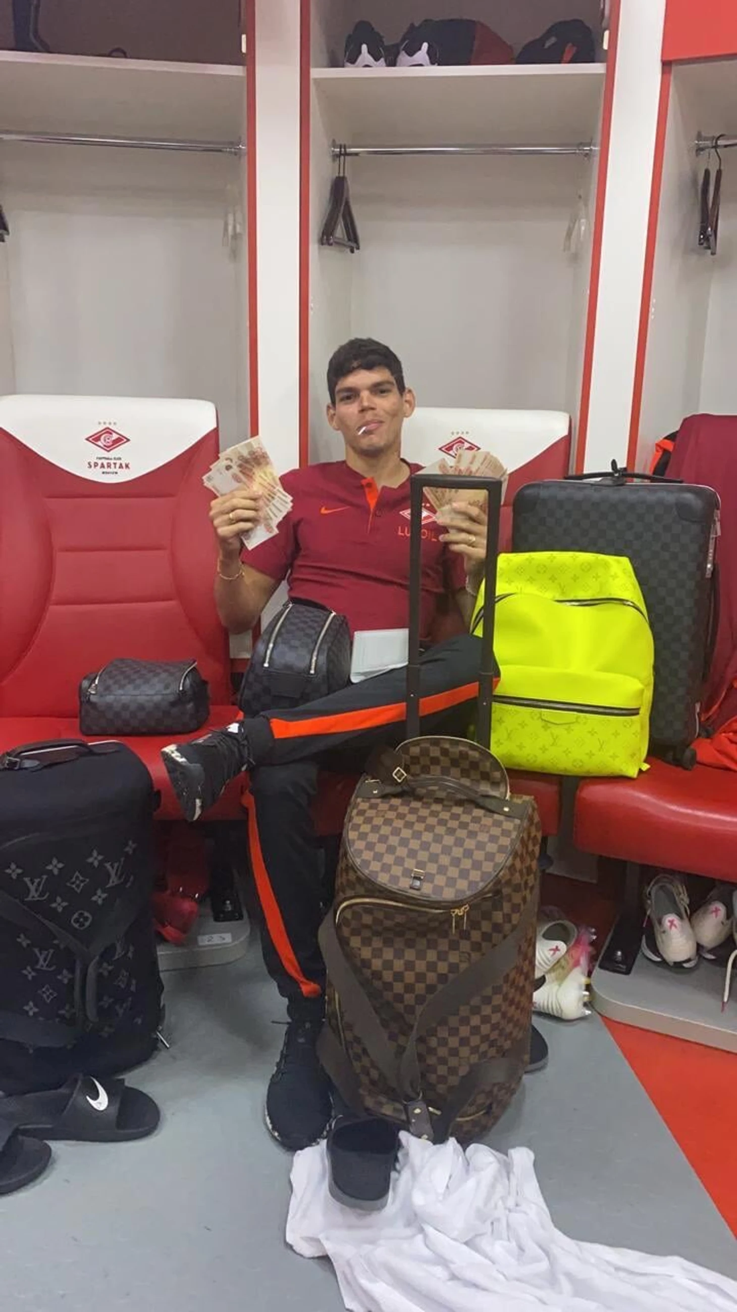 Защитник «Спартака» Айртон спародировал одноклубника Остона Урунова, который выкладывал фото с пакетами Louis Vuitton и Gucci