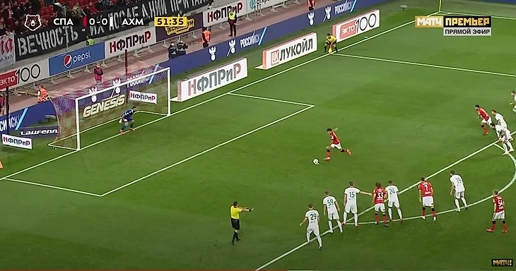 Подобное нарушение было и в матче «Спартака» во 2-м туре с «Ахматом» (2:0). Более того, игрок красно-белых в том эпизоде вбежал в штрафную даже раньше футболистов «Ахмата», но тогда Ларссон реализовал пенальти.