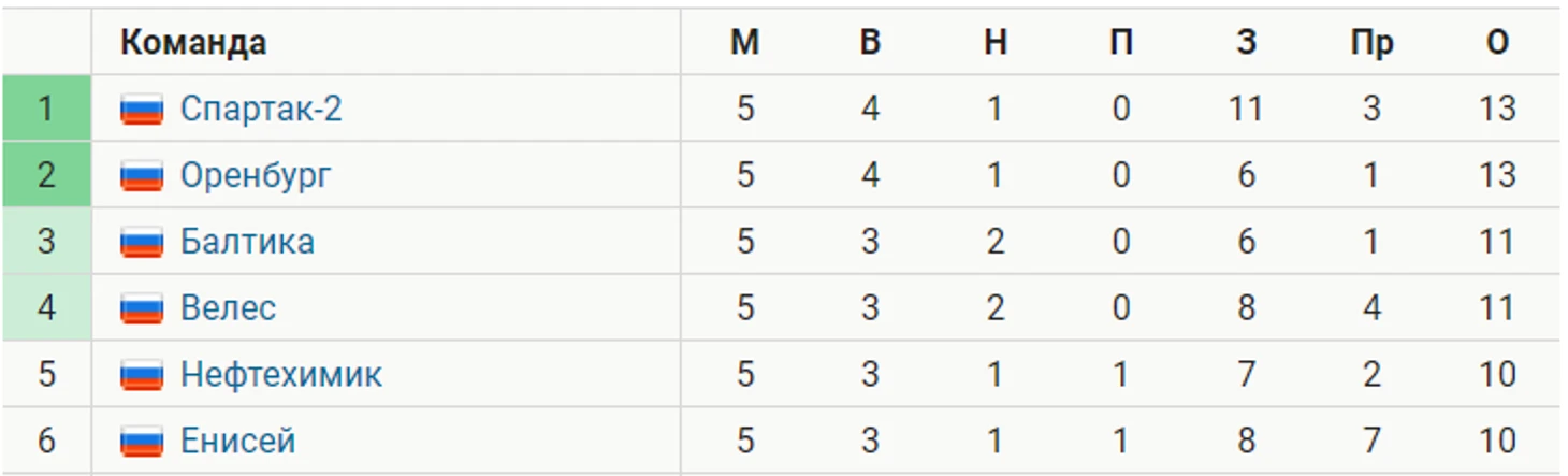 «Спартак-2» лидирует в Олимп-ФНЛ после 5 туров. Он опережает «Оренбург» по разнице мячей